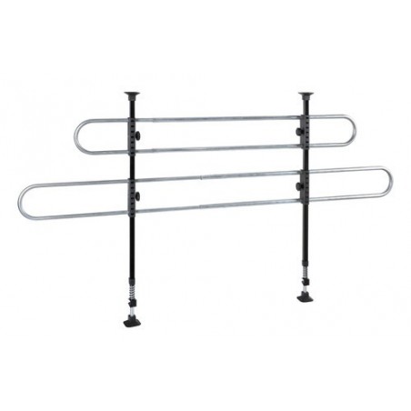 Montaggio rapido senza fori e senza utensili grazie ai montanti telescopici con molle di compensazione e le speciali clips di regolazione.