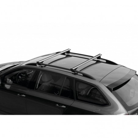 - Robusto profilo in lega di alluminio anodizzato, con predisposizione per connettori rapidi T nella scanalatura superiore. - Profilo frontale in gomma studiato per eliminare leffetto di risonanza dei flussi daria ed amplificare lefficienza aerodinamica e funzionale del profilo alare oltre che a conferire un design innovativo e distintivo allauto. - Nuovo sistema brevettato PTO press-to-open che permette linserimento dei connettori rapidi a T senza dovere rimuovere il terminale. - Profilo in gomma per sigillare la scanalatura dopo il montaggio. - Scanalatura inferiore per linserimento e scorrimento a scomparsa degli attacchi del piede. Scala graduata di posizionamento per un montaggio semplice e veloce. Composto da: Coppia barre portatutto Silenzio [N15084], Kit Evos RA [N20012]