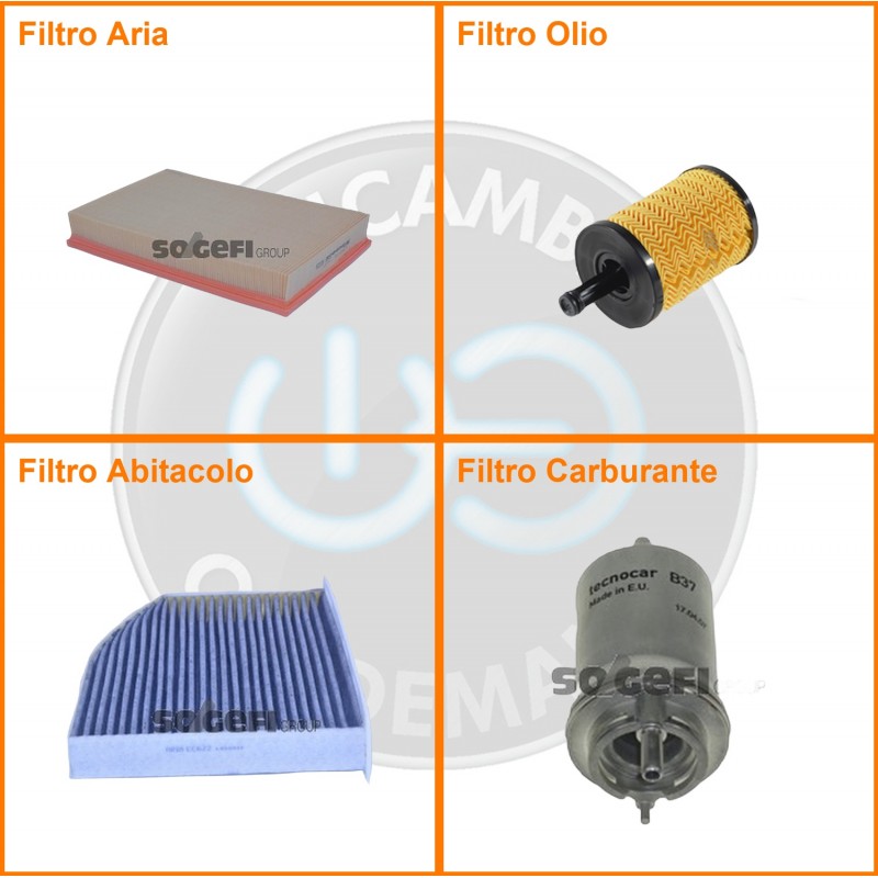 | Composizione | Filtro abitacolo ai carboni attivi, Filtro aria, Filtro benzina, Filtro olio |