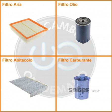 | Composizione | Filtro abitacolo ai carboni attivi, Filtro aria, Filtro benzina, Filtro olio |