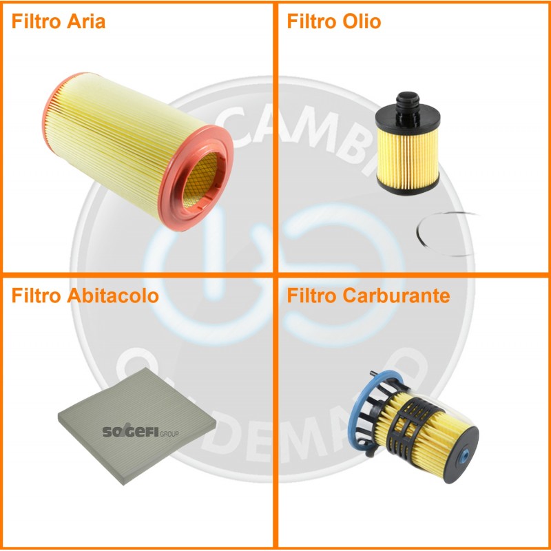 | Composizione | Filtro gasolio, Filtro olio, Filtro abitacolo, Filtro aria |