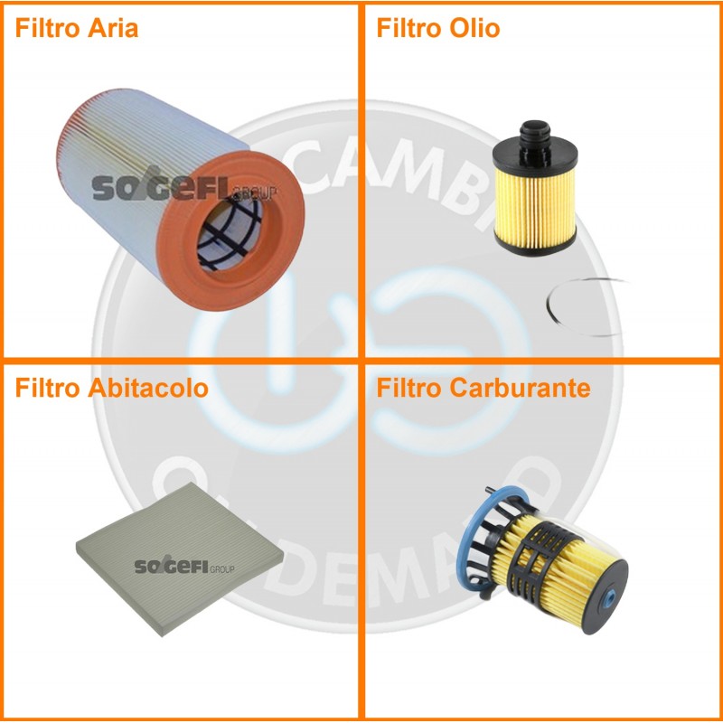 | Composizione | Filtro abitacolo, Filtro aria, Filtro gasolio, Filtro olio |