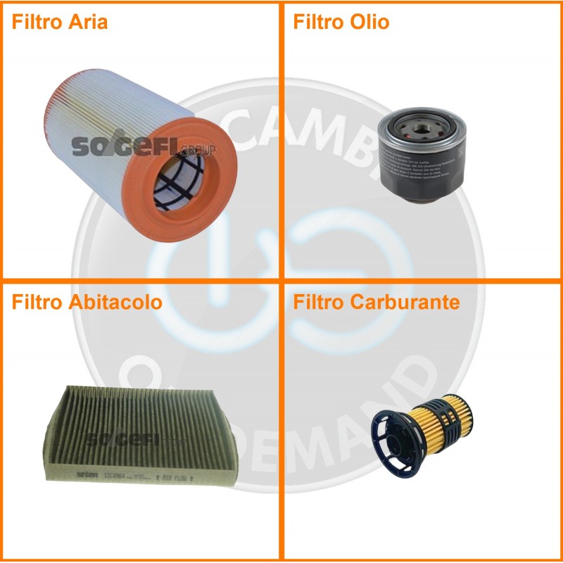 | Composizione | Filtro gasolio, Filtro olio, Filtro abitacolo ai carboni attivi, Filtro aria |