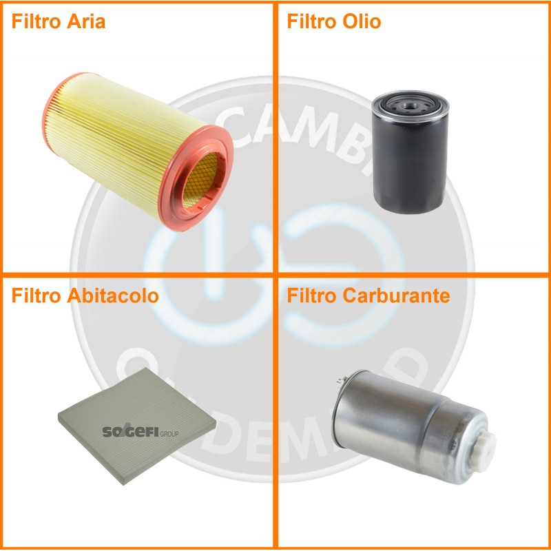 | Composizione | Filtro gasolio, Filtro olio, Filtro abitacolo, Filtro aria |
