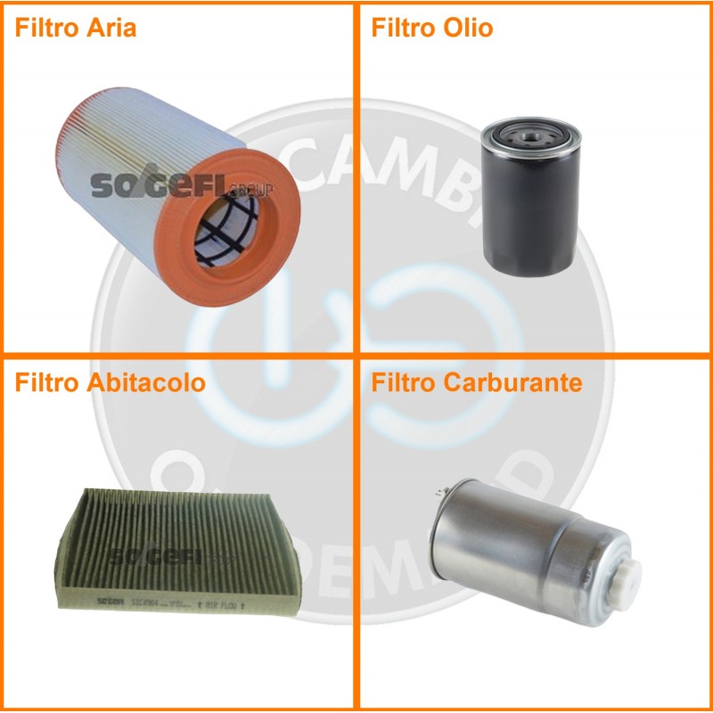 | Composizione | Filtro gasolio, Filtro olio, Filtro abitacolo ai carboni attivi, Filtro aria |