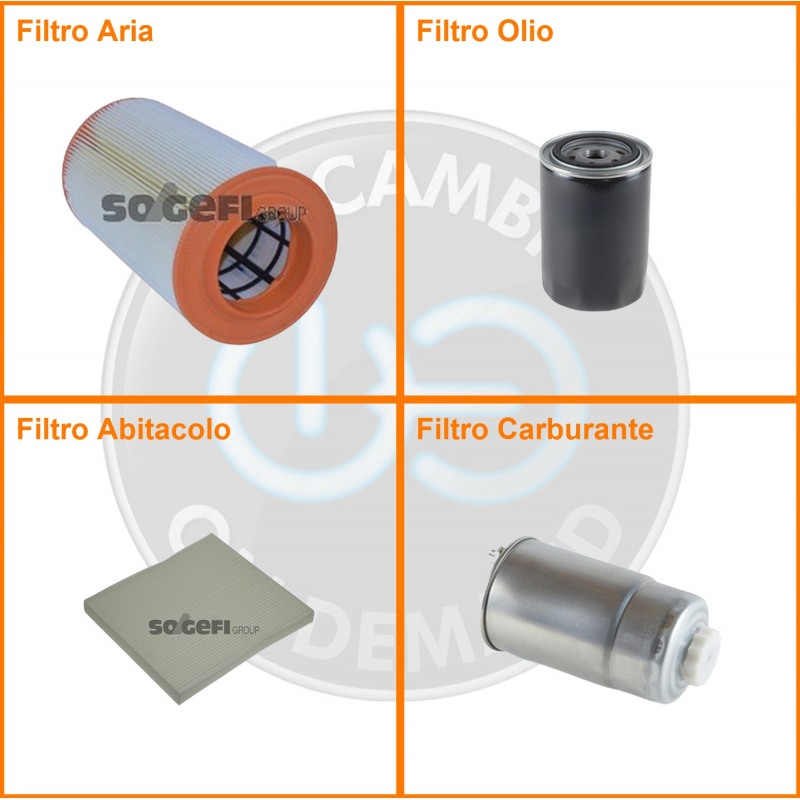 | Composizione | Filtro abitacolo, Filtro aria, Filtro gasolio, Filtro olio |