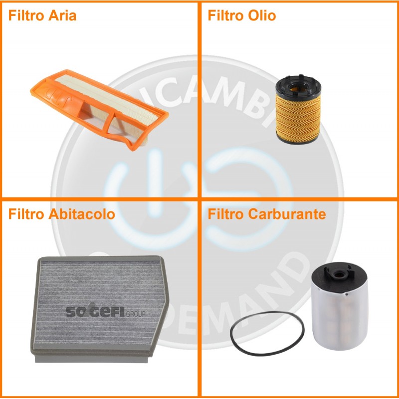 | Composizione | Filtro gasolio, Filtro olio, Filtro abitacolo ai carboni attivi, Filtro aria |