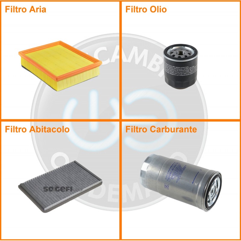 | Composizione | Filtro gasolio, Filtro olio, Filtro abitacolo ai carboni attivi, Filtro aria |