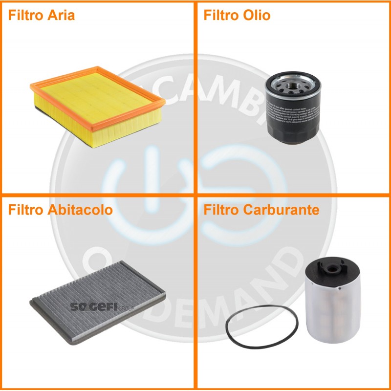| Composizione | Filtro gasolio, Filtro olio, Filtro abitacolo ai carboni attivi, Filtro aria |
