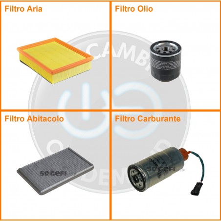 | Composizione | Filtro gasolio, Filtro olio, Filtro abitacolo ai carboni attivi, Filtro aria |