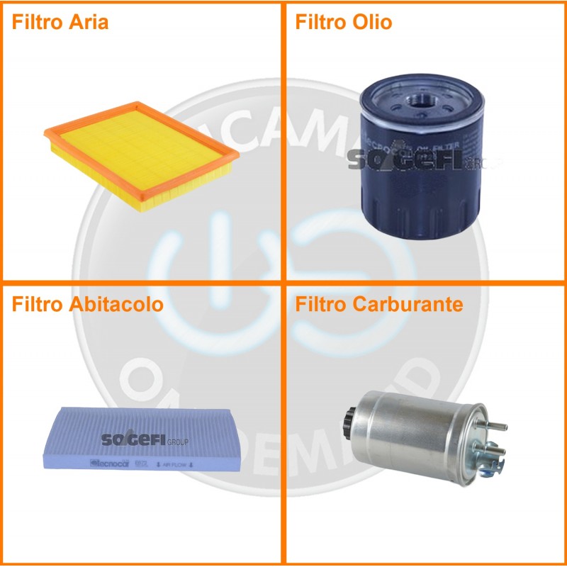 | Composizione | Filtro gasolio, Filtro olio, Filtro abitacolo, Filtro aria |