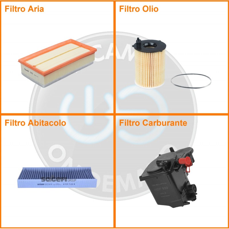 | Composizione | Filtro gasolio, Filtro olio, Filtro abitacolo ai carboni attivi, Filtro aria |