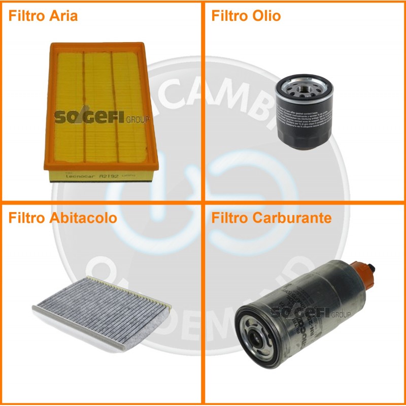 | Composizione | Filtro gasolio, Filtro olio, Filtro abitacolo ai carboni attivi, Filtro aria |