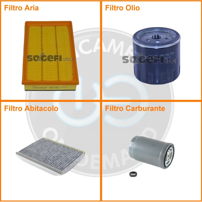 | Composizione | Filtro olio, Filtro abitacolo ai carboni attivi, Filtro aria, Filtro gasolio |