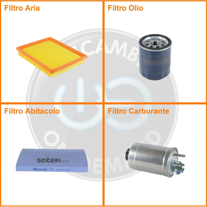 | Composizione | Filtro olio, Filtro abitacolo, Filtro aria, Filtro gasolio |