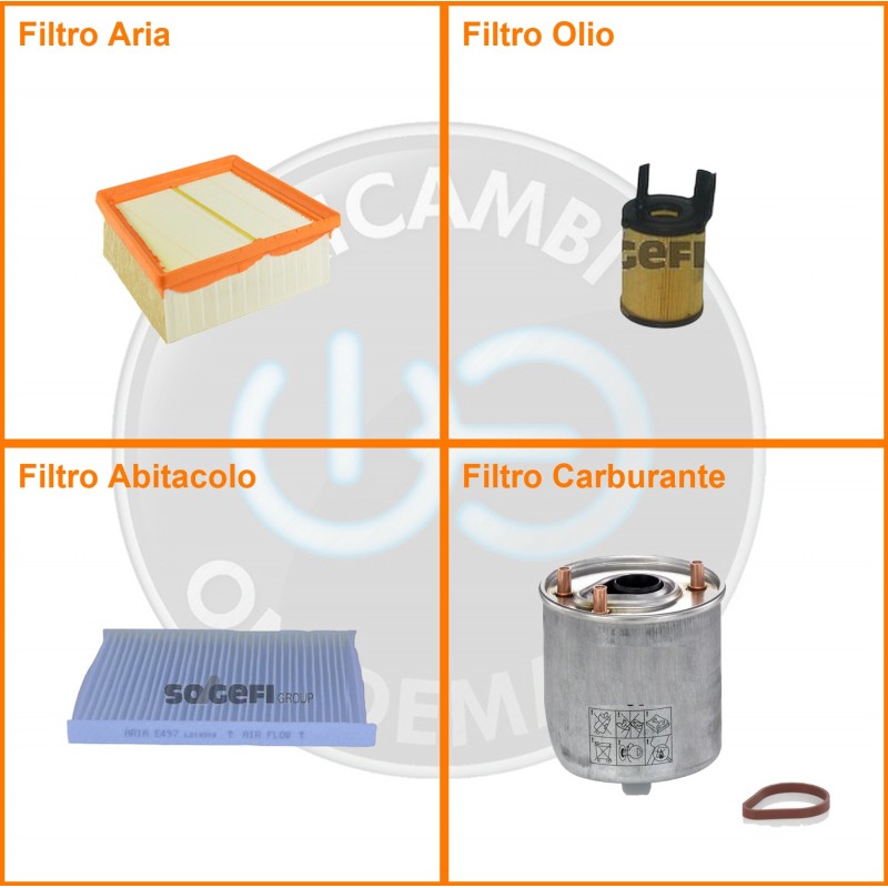 | Composizione | Filtro gasolio, Filtro olio, Filtro abitacolo, Filtro aria |