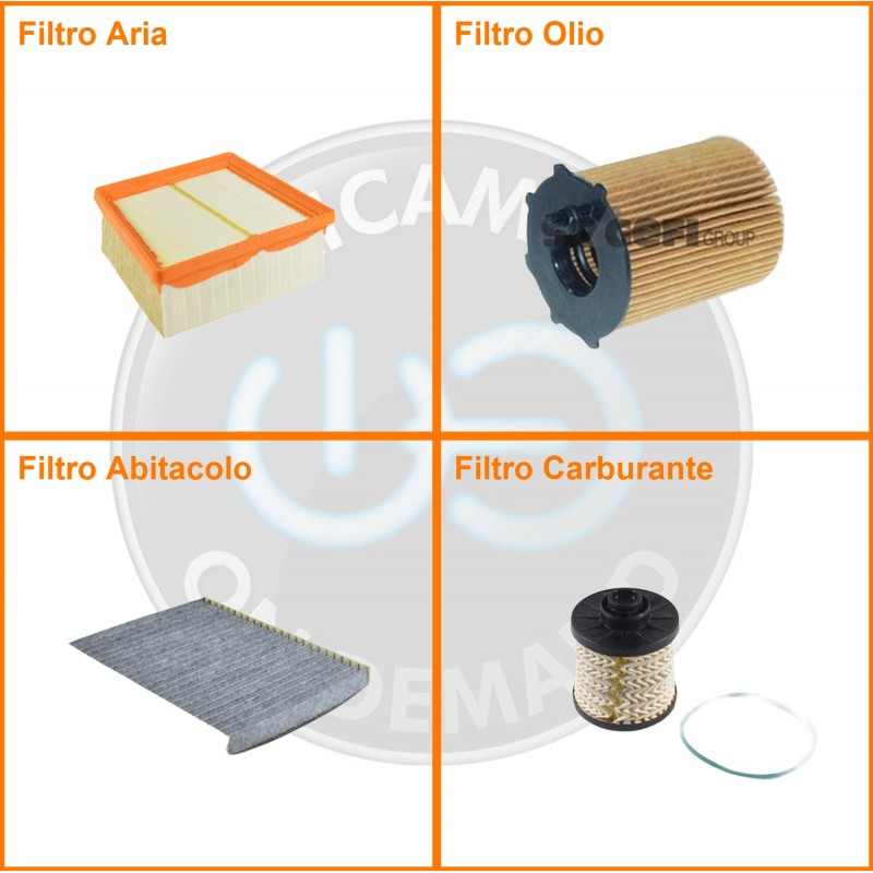 | Composizione | Filtro aria, Filtro gasolio, Filtro olio, Filtro abitacolo ai carboni attivi |