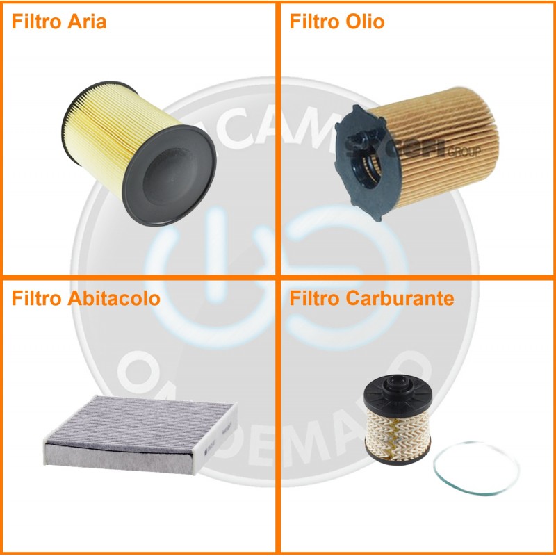 | Composizione | Filtro olio, Filtro abitacolo ai carboni attivi, Filtro aria, Filtro gasolio |