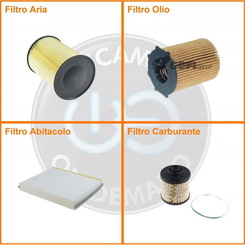 | Composizione | Filtro olio, Filtro abitacolo, Filtro aria, Filtro gasolio |