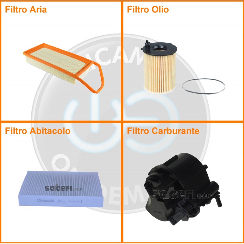 | Composizione | Filtro gasolio, Filtro olio, Filtro abitacolo, Filtro aria |