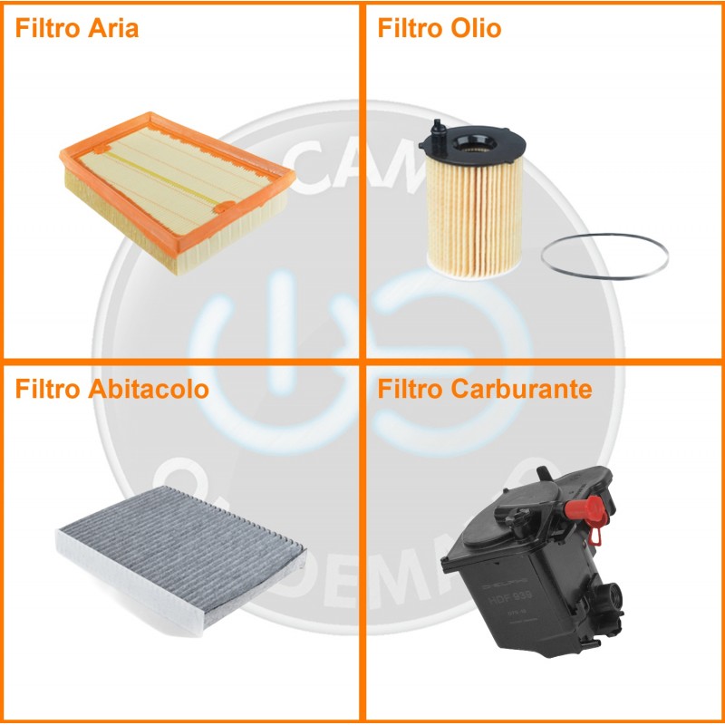 | Composizione | Filtro gasolio, Filtro olio, Filtro abitacolo ai carboni attivi, Filtro aria |