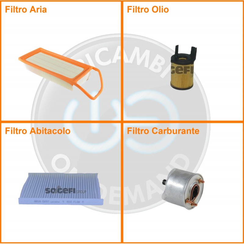 | Composizione | Filtro abitacolo, Filtro aria, Filtro gasolio, Filtro olio |