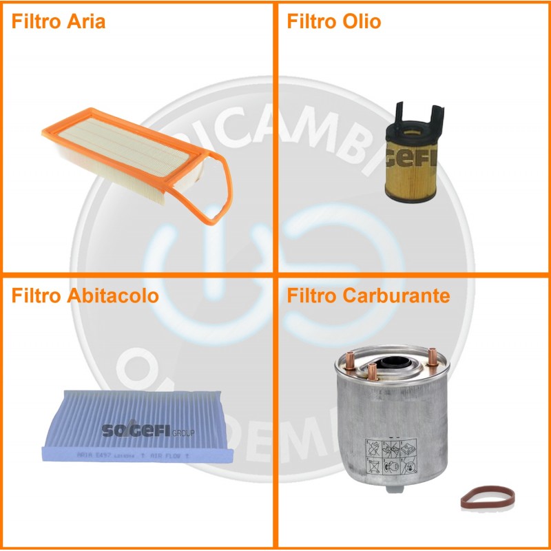 | Composizione | Filtro abitacolo, Filtro aria, Filtro gasolio, Filtro olio |