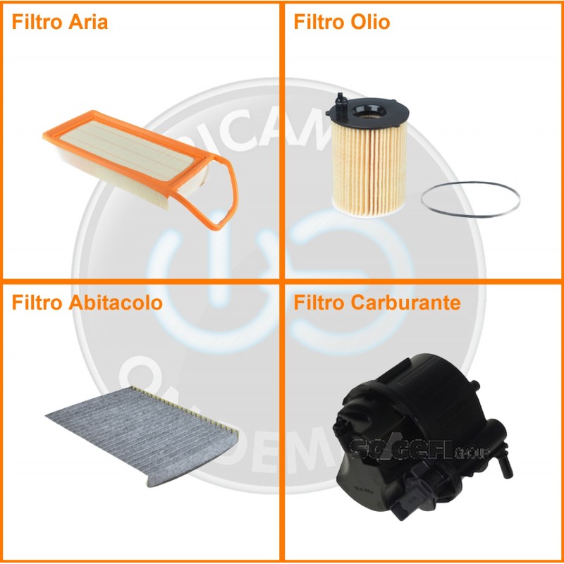 | Composizione | Filtro gasolio, Filtro olio, Filtro abitacolo ai carboni attivi, Filtro aria |