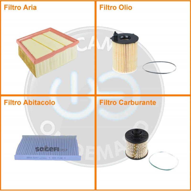 | Composizione | Filtro gasolio, Filtro olio, Filtro abitacolo, Filtro aria |