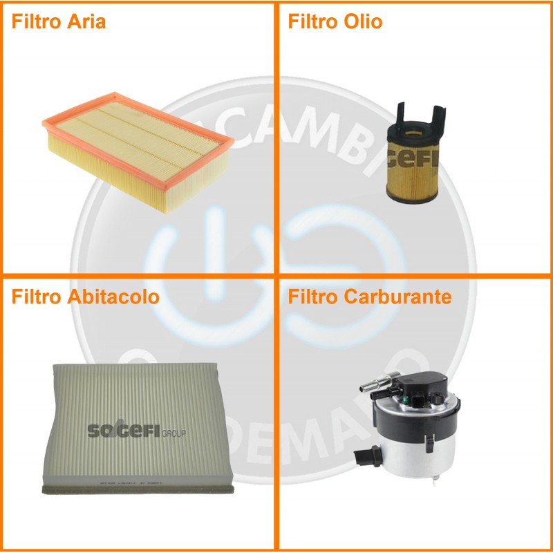 | Composizione | Filtro gasolio, Filtro olio, Filtro abitacolo, Filtro aria |