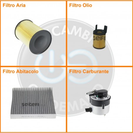 | Composizione | Filtro gasolio, Filtro olio, Filtro abitacolo ai carboni attivi, Filtro aria |