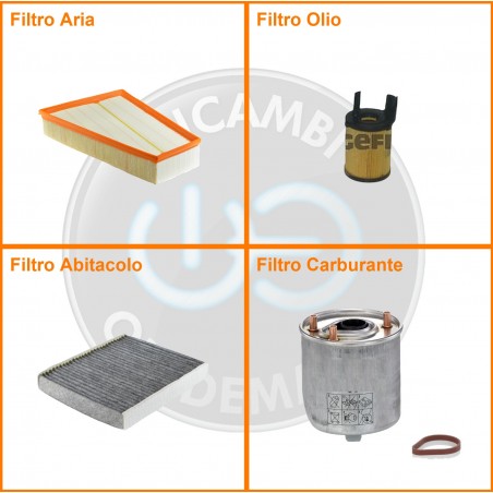 | Composizione | Filtro aria, Filtro gasolio, Filtro olio, Filtro abitacolo ai carboni attivi |