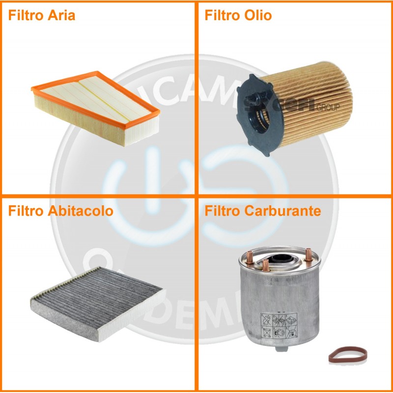 | Composizione | Filtro aria, Filtro gasolio, Filtro olio, Filtro abitacolo ai carboni attivi |