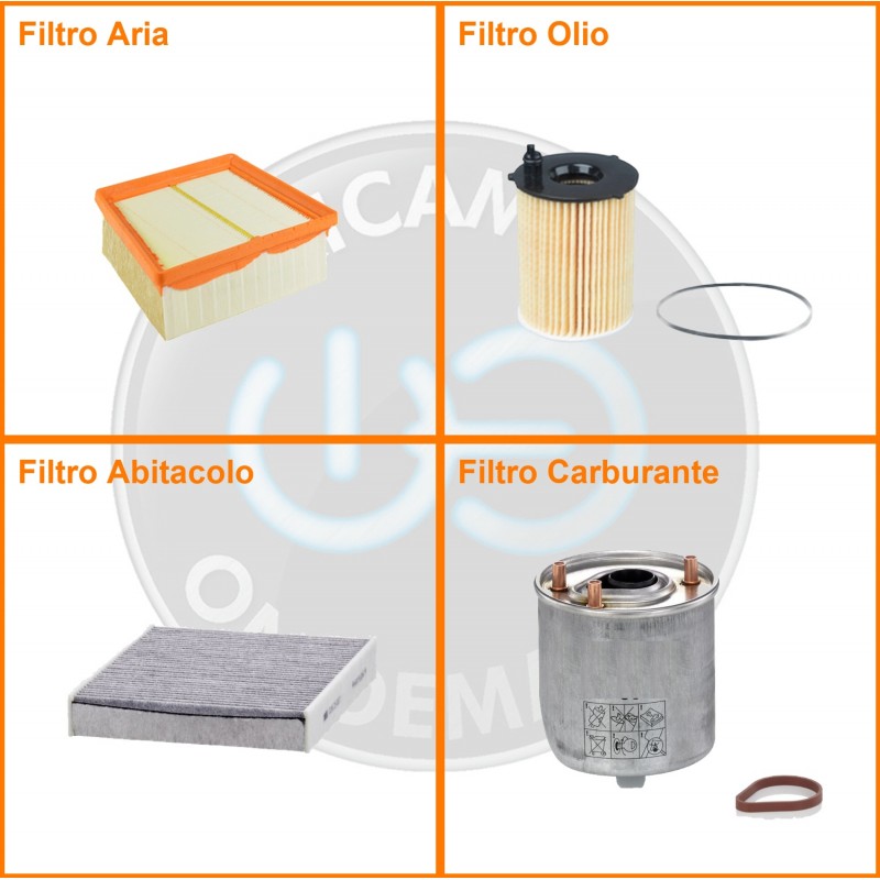 | Composizione | Filtro gasolio, Filtro olio, Filtro abitacolo ai carboni attivi, Filtro aria |