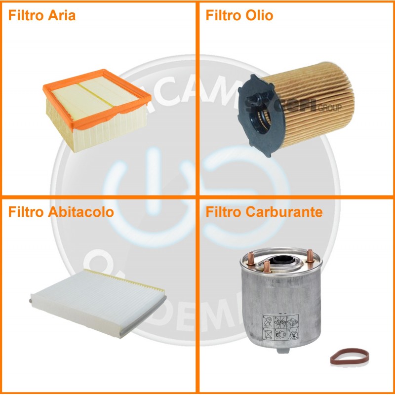 | Composizione | Filtro gasolio, Filtro olio, Filtro abitacolo, Filtro aria |