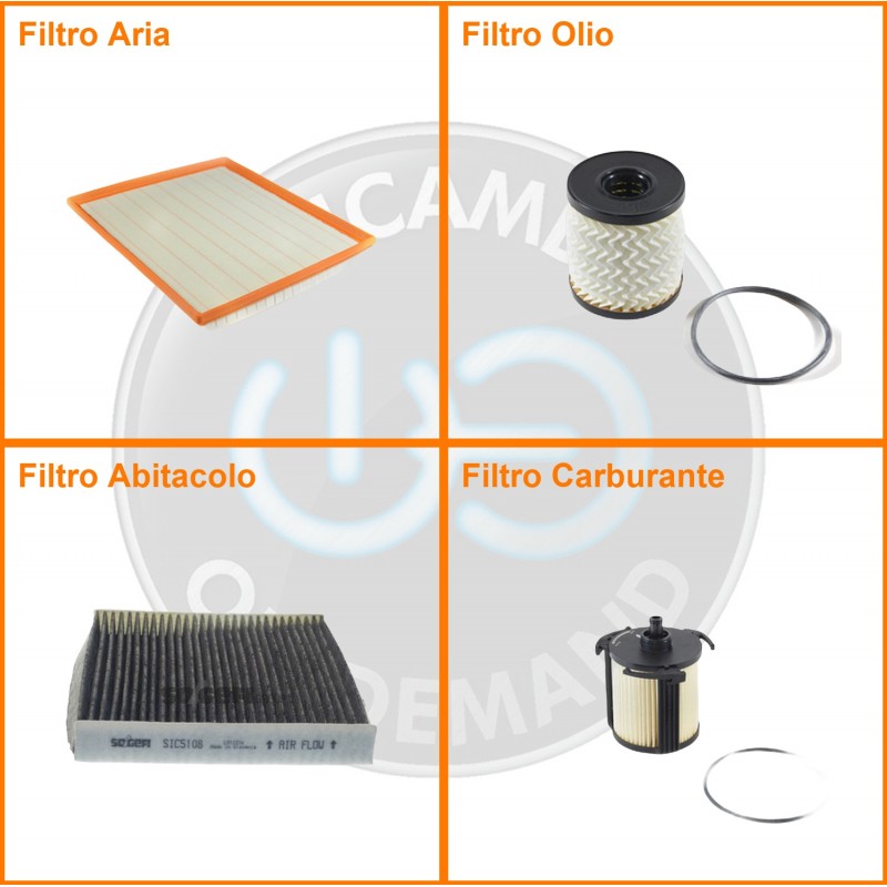 | Composizione | Filtro gasolio, Filtro olio, Filtro abitacolo ai carboni attivi, Filtro aria |
