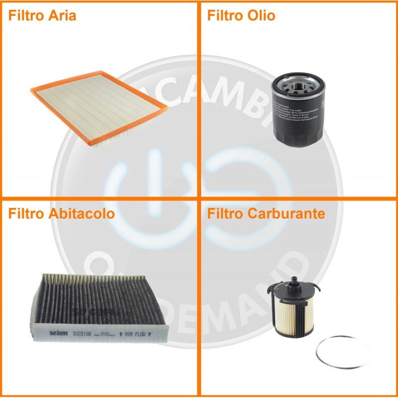 | Composizione | Filtro gasolio, Filtro olio, Filtro abitacolo ai carboni attivi, Filtro aria |