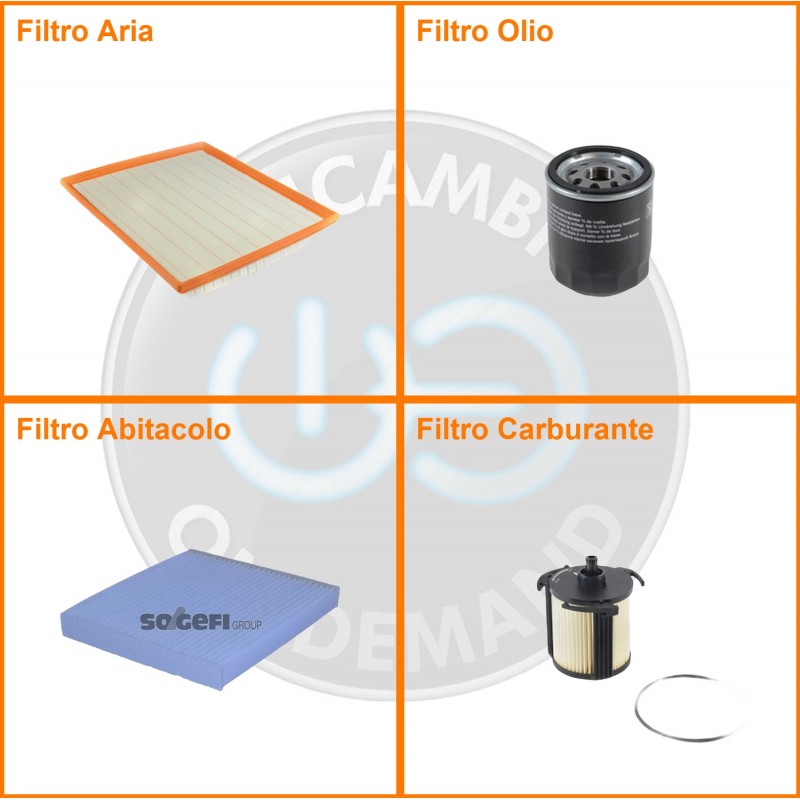 | Composizione | Filtro gasolio, Filtro olio, Filtro abitacolo, Filtro aria |