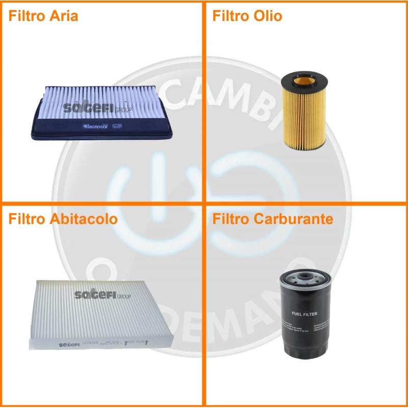 | Composizione | Filtro abitacolo, Filtro aria, Filtro gasolio, Filtro olio |