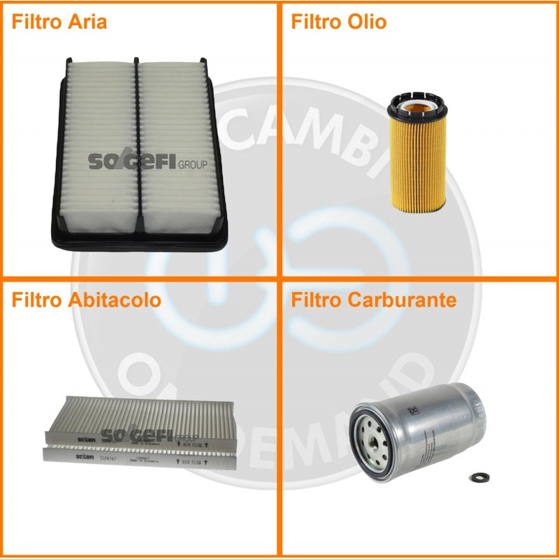 | Composizione | Filtro gasolio, Filtro olio, Filtro abitacolo, Filtro aria |