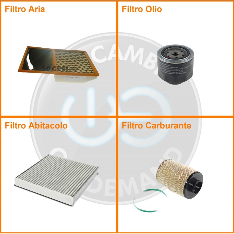 | Composizione | Filtro gasolio, Filtro olio, Filtro abitacolo ai carboni attivi, Filtro aria |