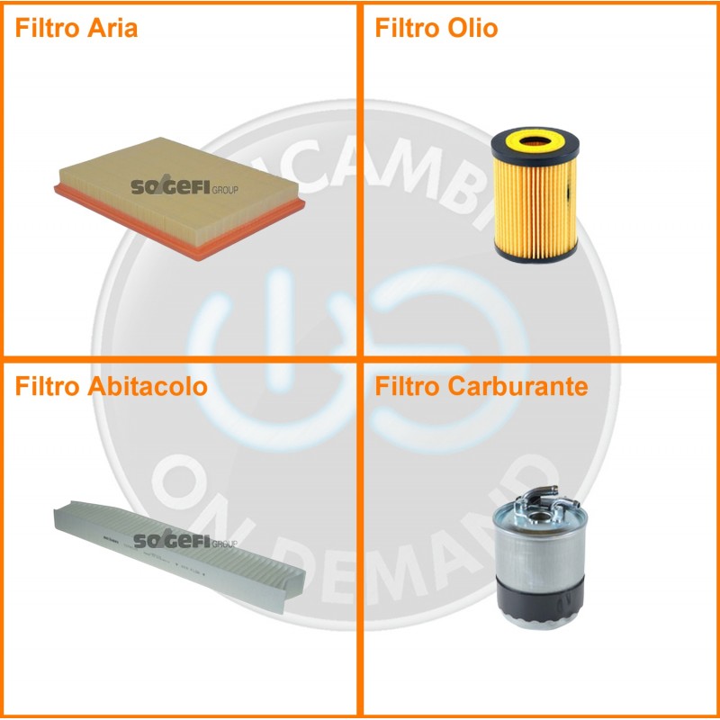 | Composizione | Filtro gasolio, Filtro olio, Filtro abitacolo, Filtro aria |