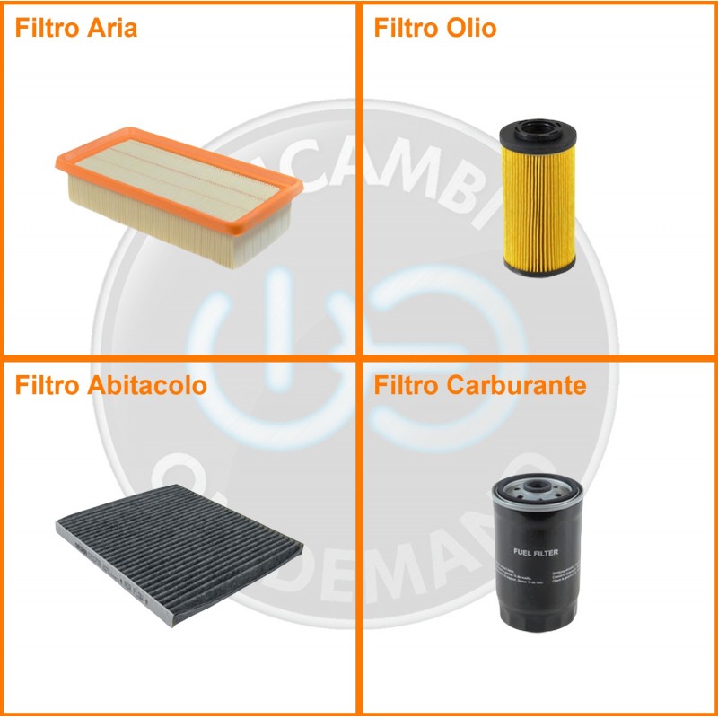 | Composizione | Filtro olio, Filtro abitacolo ai carboni attivi, Filtro aria, Filtro gasolio |