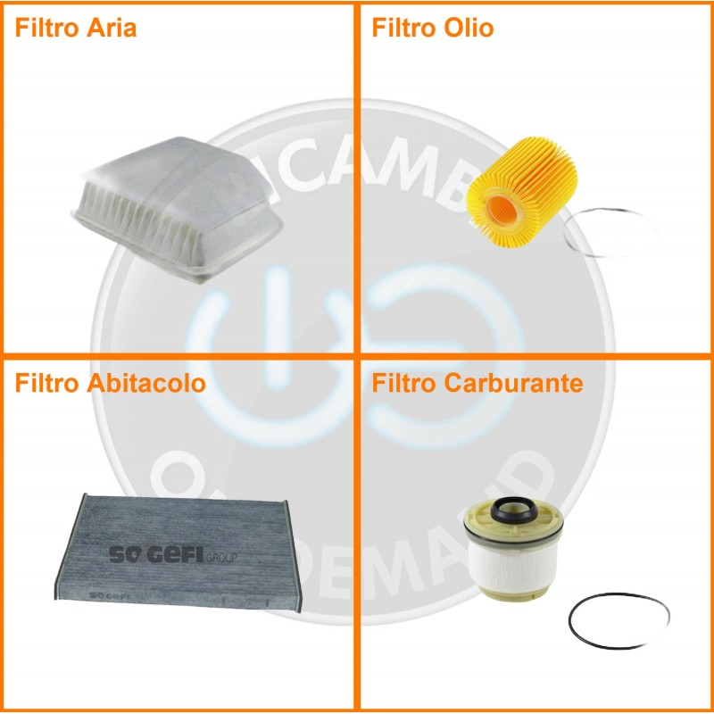 | Composizione | Filtro gasolio, Filtro olio, Filtro abitacolo ai carboni attivi, Filtro aria |