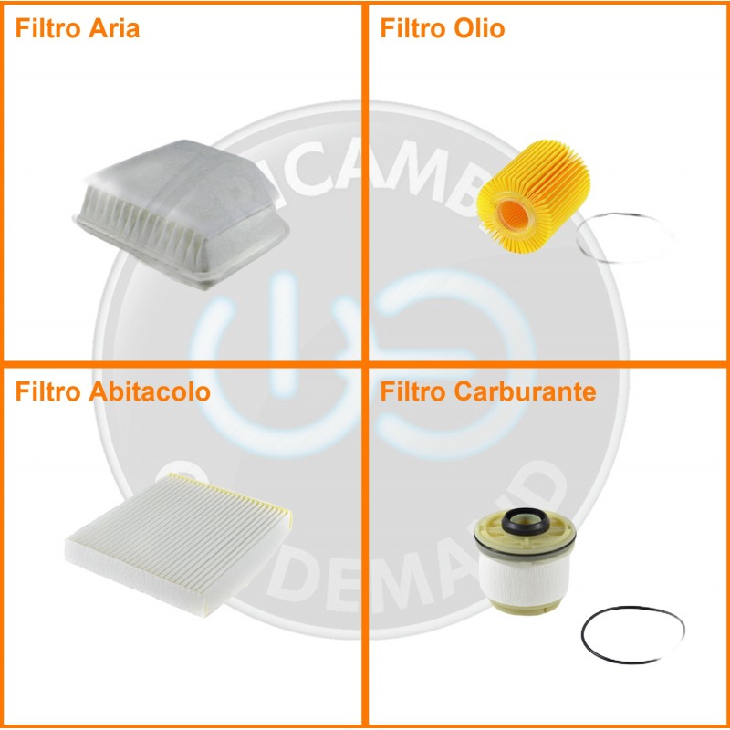 | Composizione | Filtro olio, Filtro abitacolo, Filtro aria, Filtro gasolio |