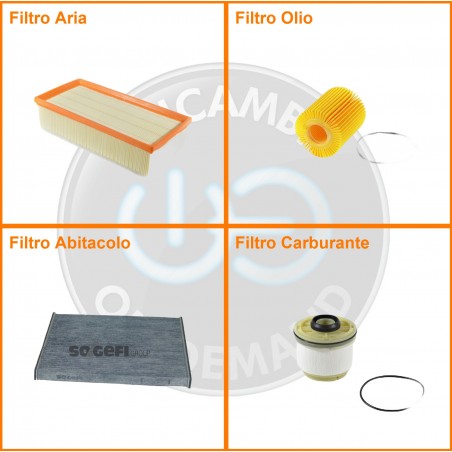 | Composizione | Filtro olio, Filtro abitacolo ai carboni attivi, Filtro aria, Filtro gasolio |
