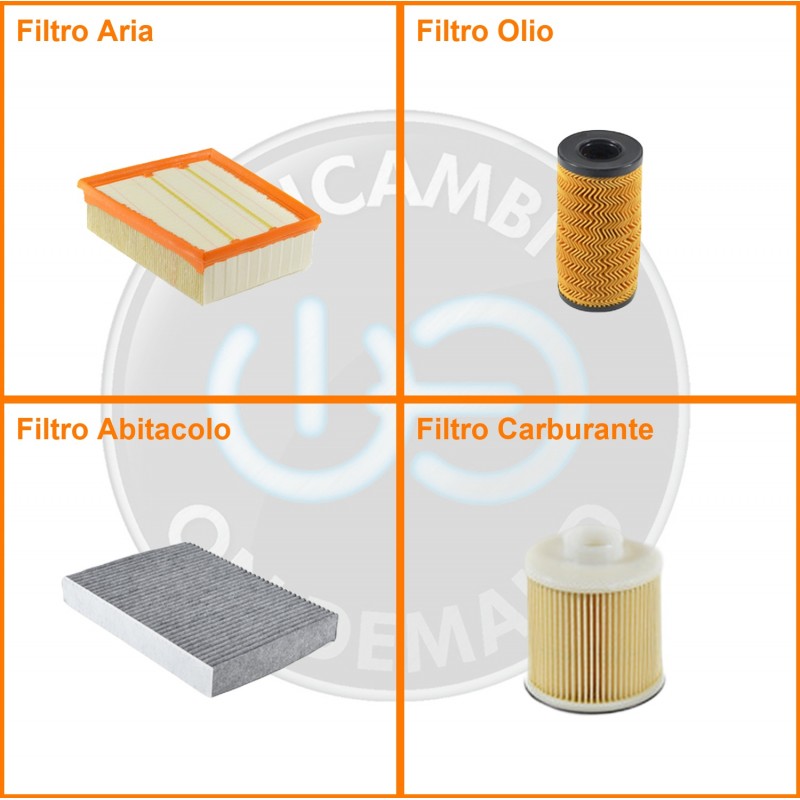 | Composizione | Filtro abitacolo ai carboni attivi, Filtro aria, Filtro gasolio, Filtro olio |