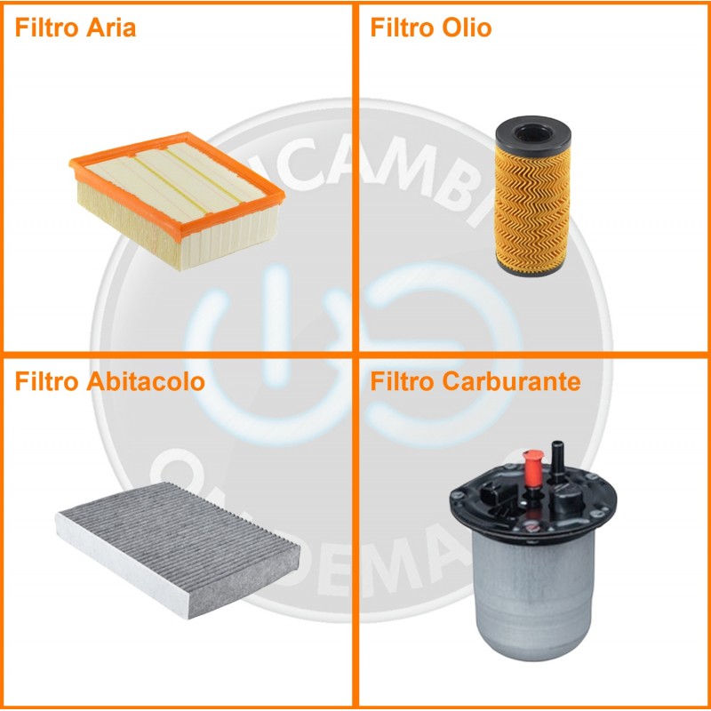 | Composizione | Filtro gasolio, Filtro olio, Filtro abitacolo ai carboni attivi, Filtro aria |