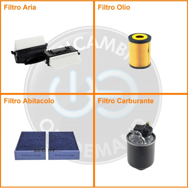| Composizione | Filtro gasolio, Filtro olio, Filtro abitacolo ai carboni attivi, Filtro aria |