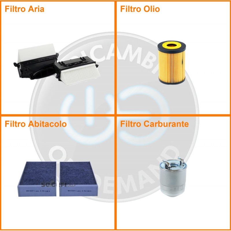 | Composizione | Filtro gasolio, Filtro olio, Filtro abitacolo ai carboni attivi, Filtro aria |